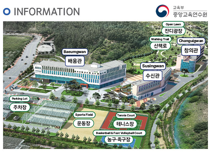 Location 교육부 중앙교육연수원 (National Education Training Institute) Address 대구 동구 첨단로 80 (80, Cheomdan-ro, Dong-gu, Daegu, Republic of Korea) Accommodation 중앙교육연수원 기숙사 (Dormitory at the National Education Training Institute) Website https://www.neti.go.kr/ For more detailed guide of the location, please refer to this page: Link